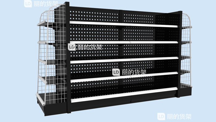 超市货架主要分单面货架和双面货架,下面介绍一下这两种货架常规使用的货架尺寸: